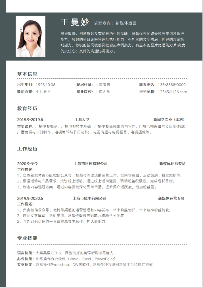 简历模板编号C0106