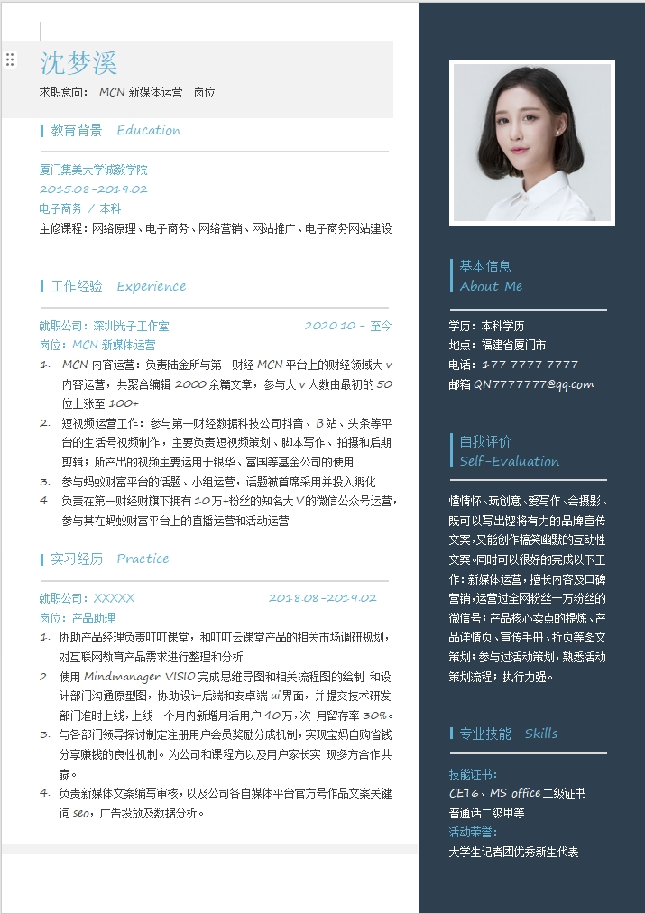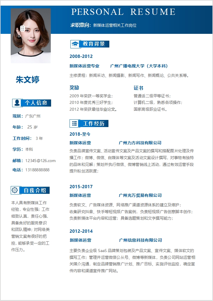 简历模板编号C0102