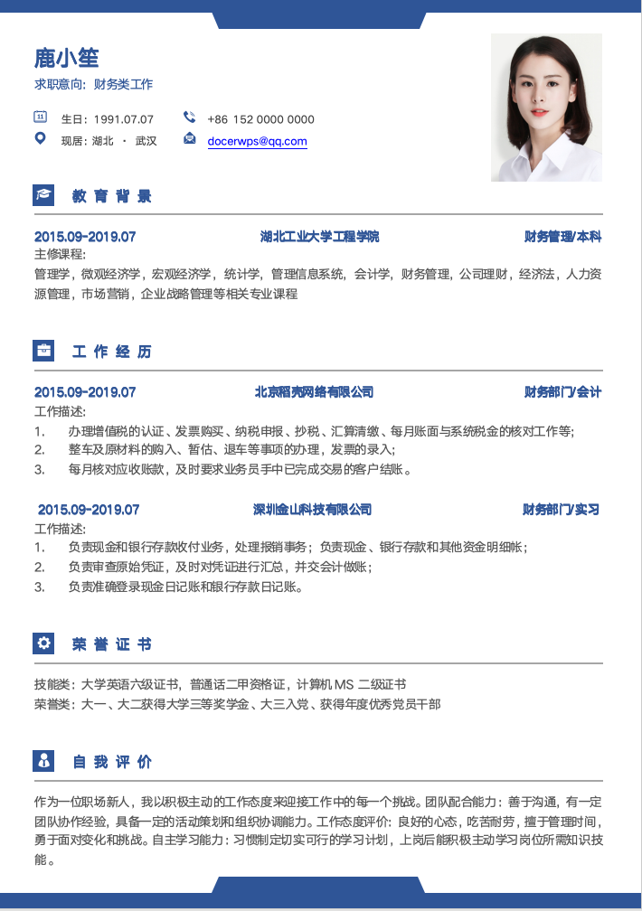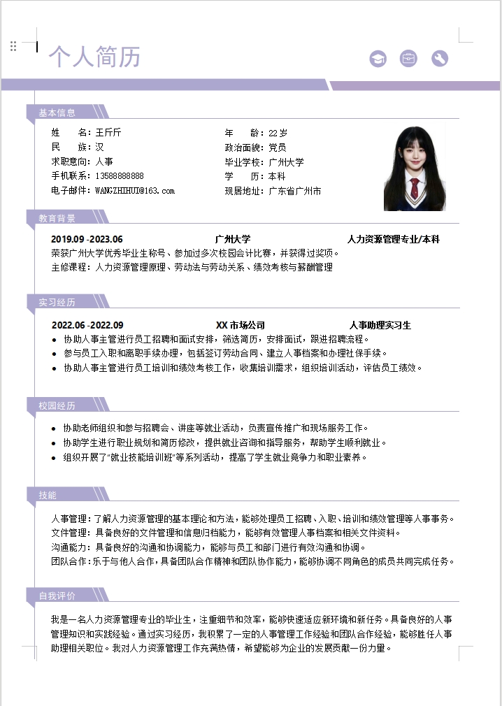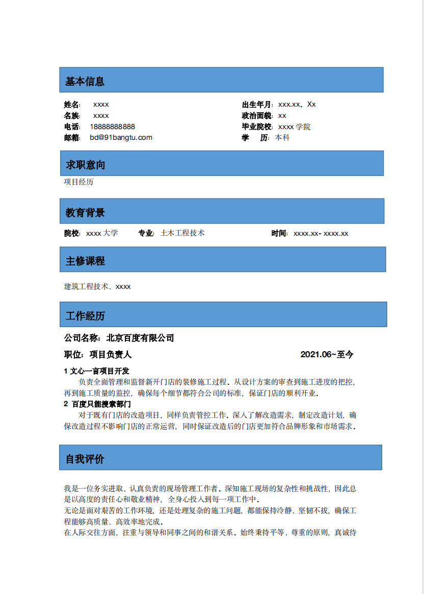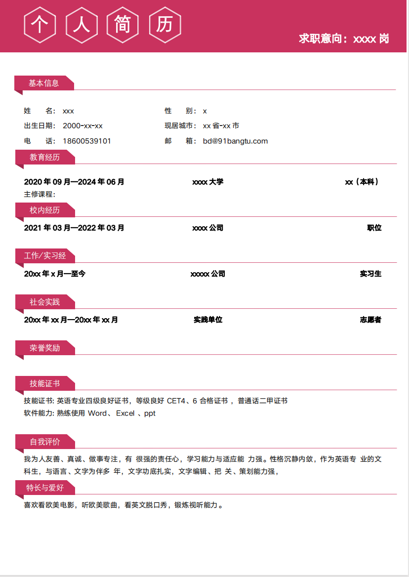 简历模版编号A0001