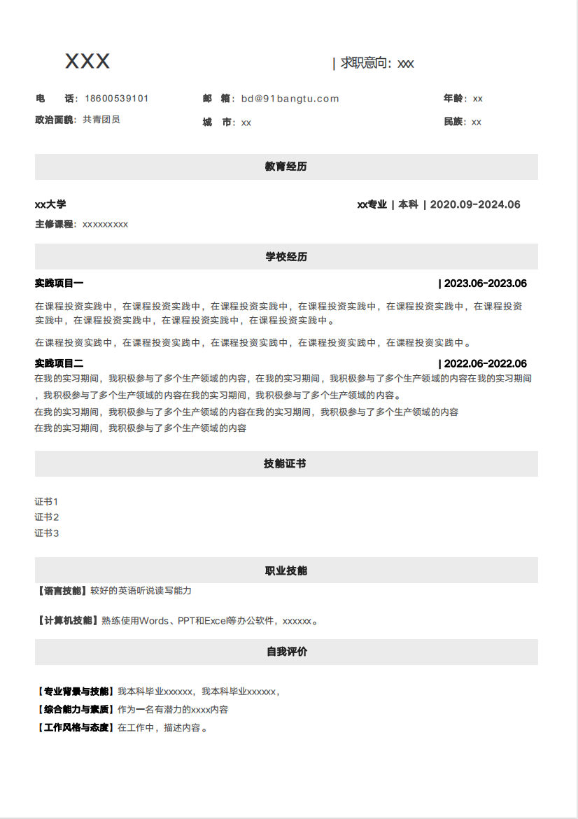 简历服务/简历模板-B0001