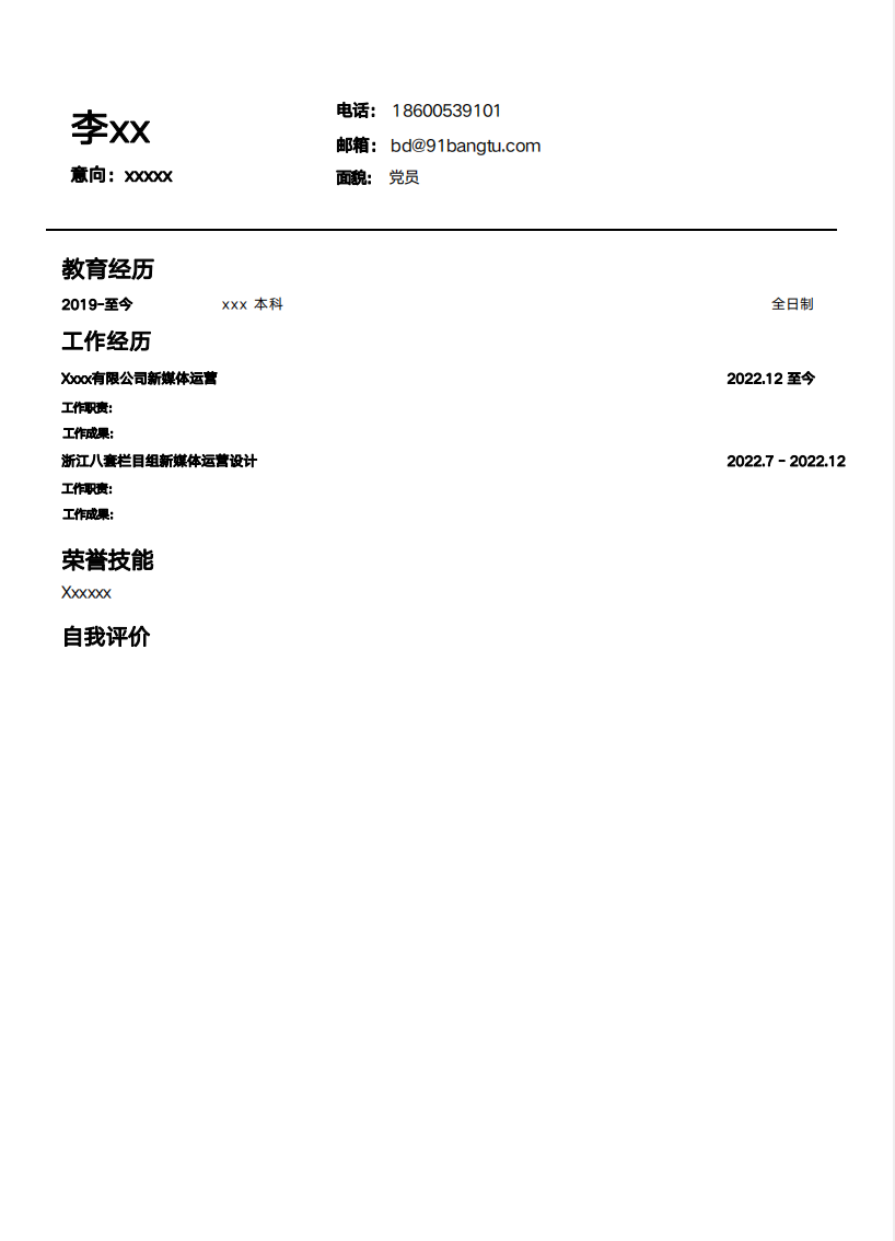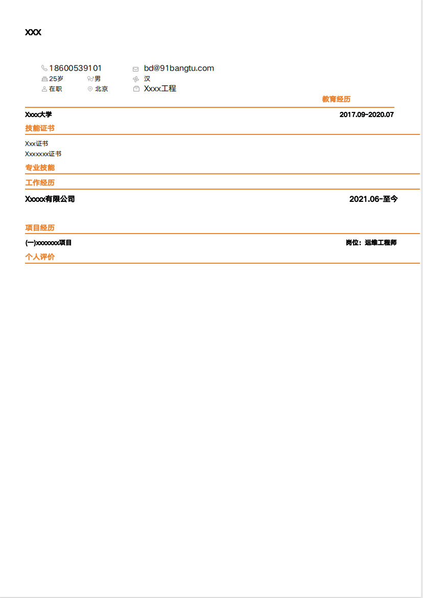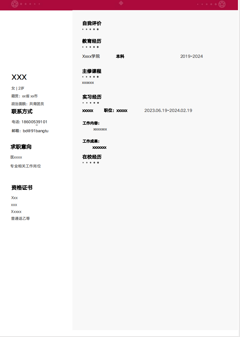 简历模版编号A0010