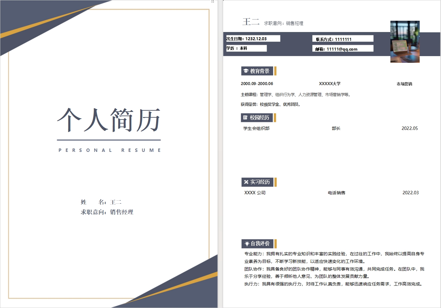 简历模板编号C0022,两页模版+封面,直接替换,简单好用!! 强烈推荐!!