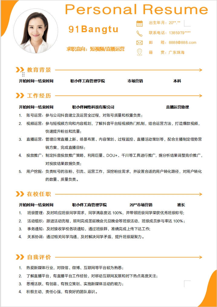 简历模板编号C0111