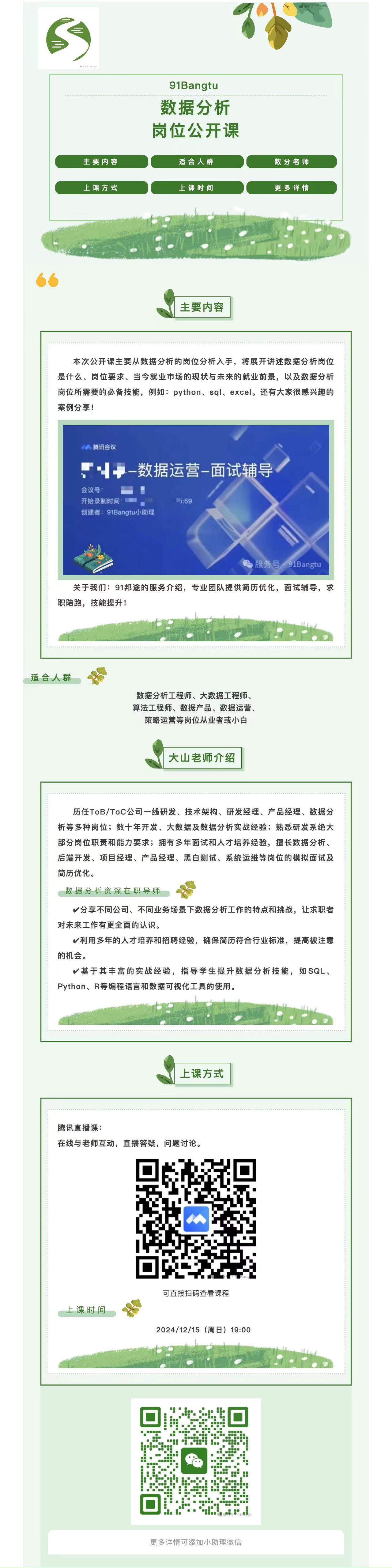 课程名称:公开课直播-数据分析行业概况&职业规划指南