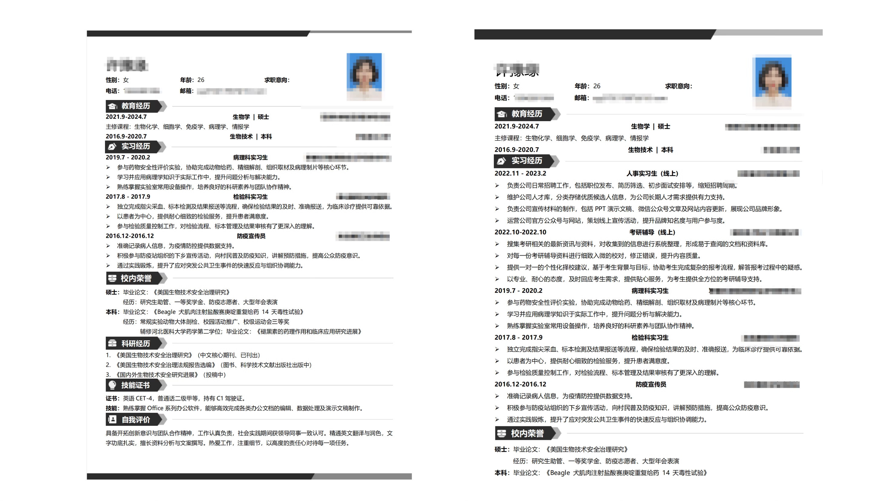 格式清晰,排版合理,根据过往经历和求职岗位匹配简历内容,重点突出,专业团队制作(HR+专业岗位面试官),项目深度挖掘,能力高度提炼,在简历中展现自己的优势!