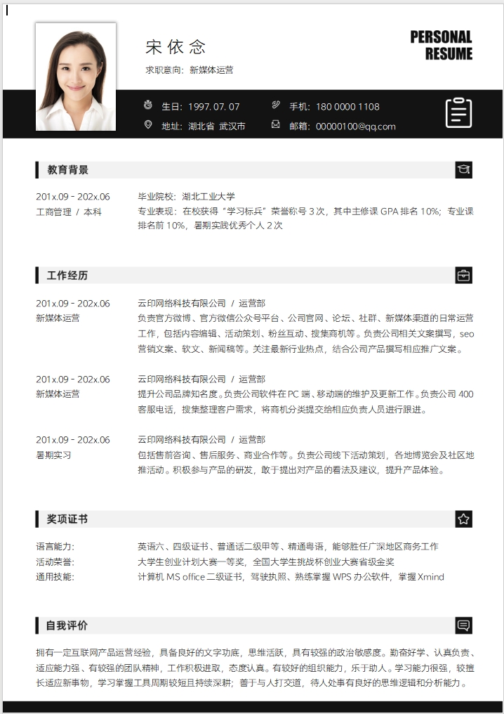 简历模板编号C0105
